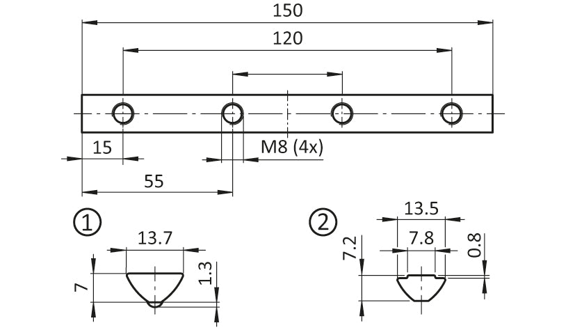 Befestigungssatz für Winkel 8 160x160 M8